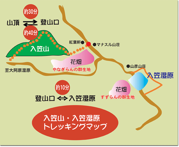 入笠山は、豊富な高山植物と360度の大展望で人気のある山です。頂上からの展望は抜群です。仙丈、甲斐駒等南アルプスの峰々、反対側には八ヶ岳もよく見え、その右には金峰山。入笠湿原〜入笠山周辺〜大阿原湿原あたりには季節ごとに様々な可憐な高山植物が咲いており道中の目を楽しませてくれます。