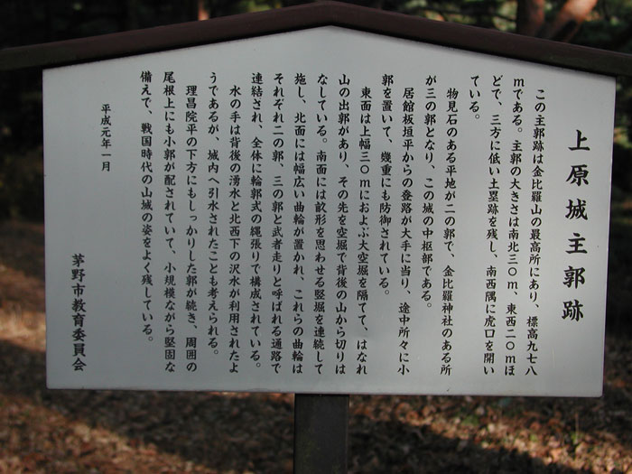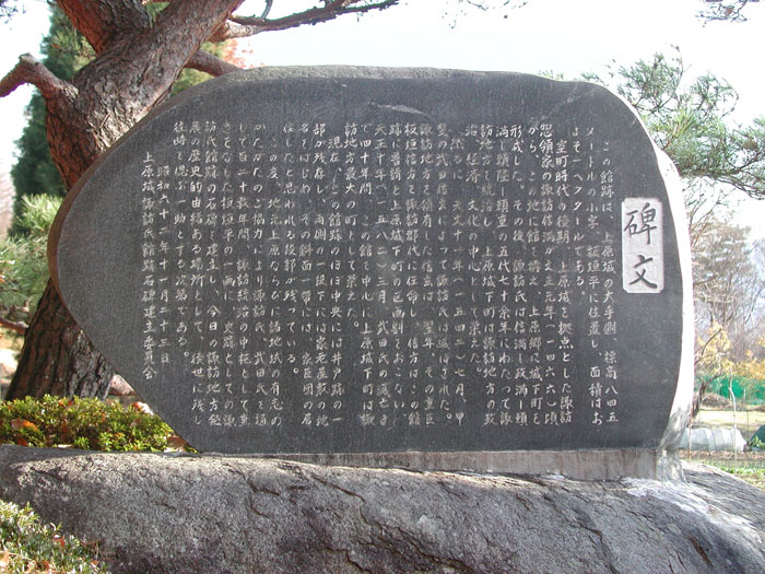 室町時代の後期、上原城を拠点とした諏訪惣領家の諏訪信満が文正五年(1466)頃から、この地に館を構え、上原郷に城下町を形成した。その後、諏訪氏は信満ー政満ー頼満ー頼隆ー頼重の五代七十年余年にわたって諏訪地方を統治し、上原城下町は諏訪地方の政治、経済、文化の中心として栄えた。然るに、天文十一年(1542)七月、甲斐の武田信玄により諏訪氏は滅ぼされた。諏訪地方を領有した信玄は、翌年、その重臣板垣信方を諏訪郡代に任命し、信方はこの館跡に普請と上原城下町の区画割りをおこない、天正十年(1582)三月、武田氏の滅亡まで四十年間、この館を中心に上原城下町は諏訪地方最大の町として栄えた。
