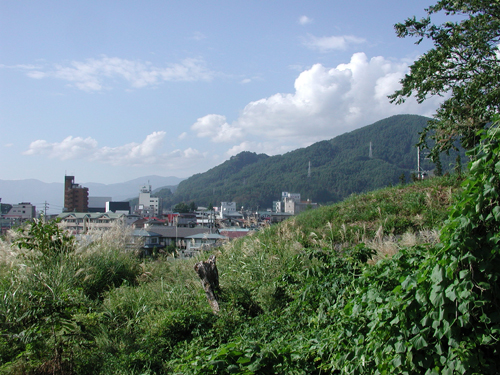 写真は宮川小学校前の御柱木落坂付近からのもの。この付近は上川の段丘上に位置している。上川を挟んで対岸が犬射原、その先に上原城が見え、諏訪勢の動きが見通せる位置である。